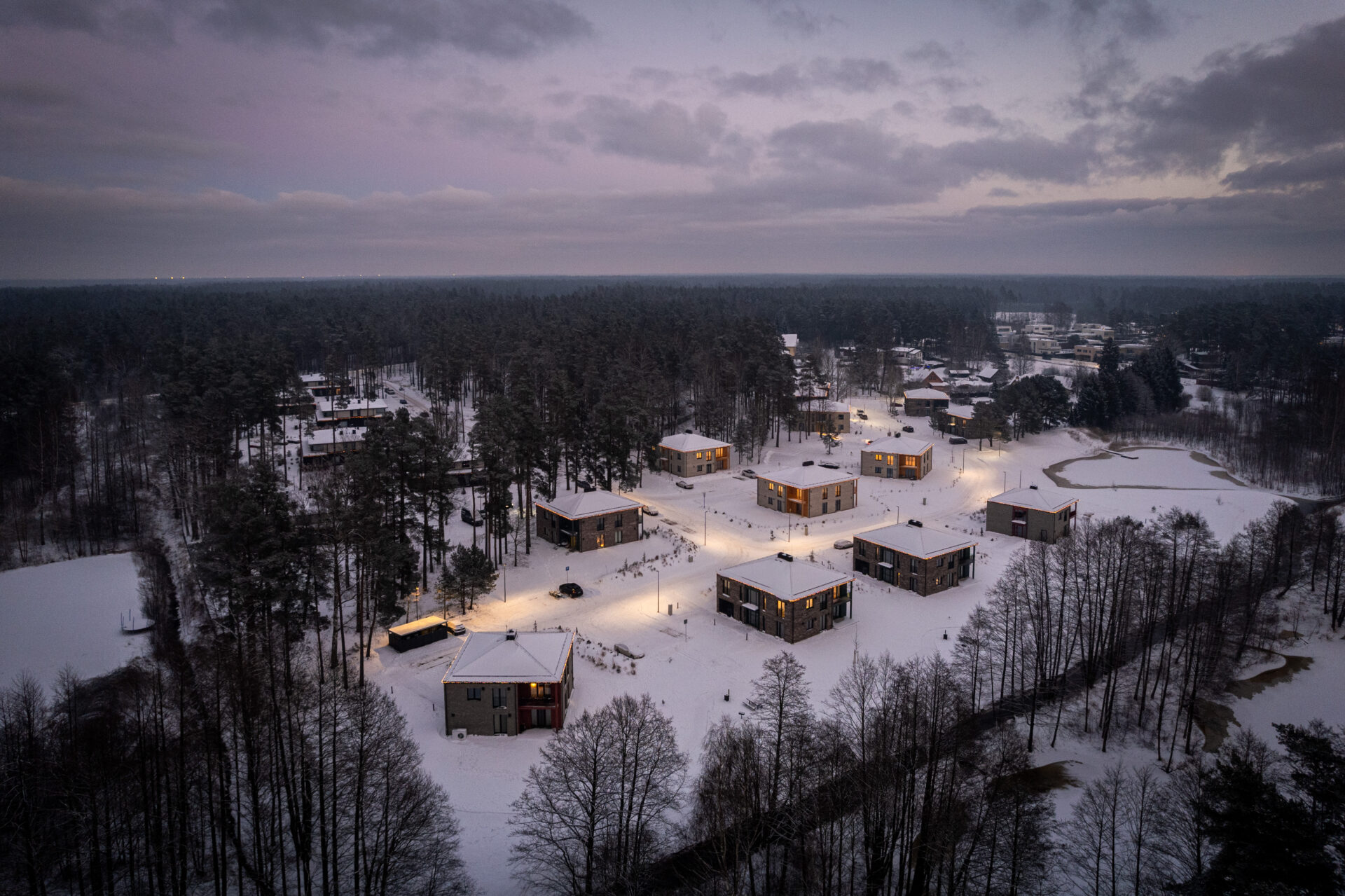 Šis ir viens no četriem dzīvokļiem kopīgā divstāvu jaunbūvē. Dzīvoklis pieejams ar trim vai divām istabām, pielāgojot to dažādām vajadzībām. Plānojums veidots funkcionāli, iekļaujot plašu dzīves telpu ar virtuvi, guļamistabu un vannasistabu.